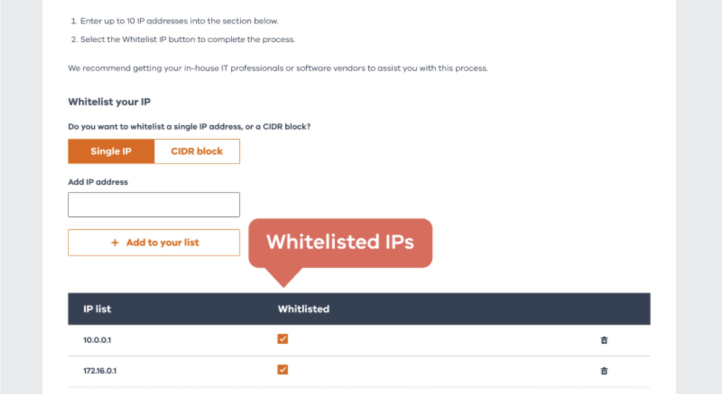 To access the API, you’ll need to whitelist any IP addresses of devices that’ll be sending us data.
