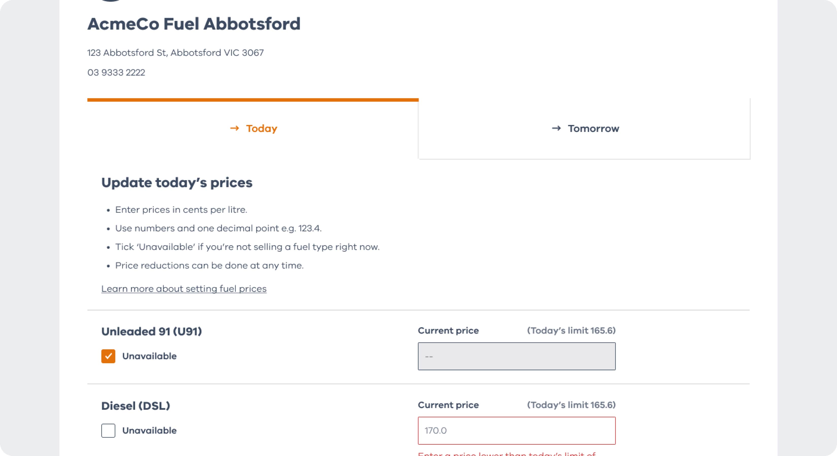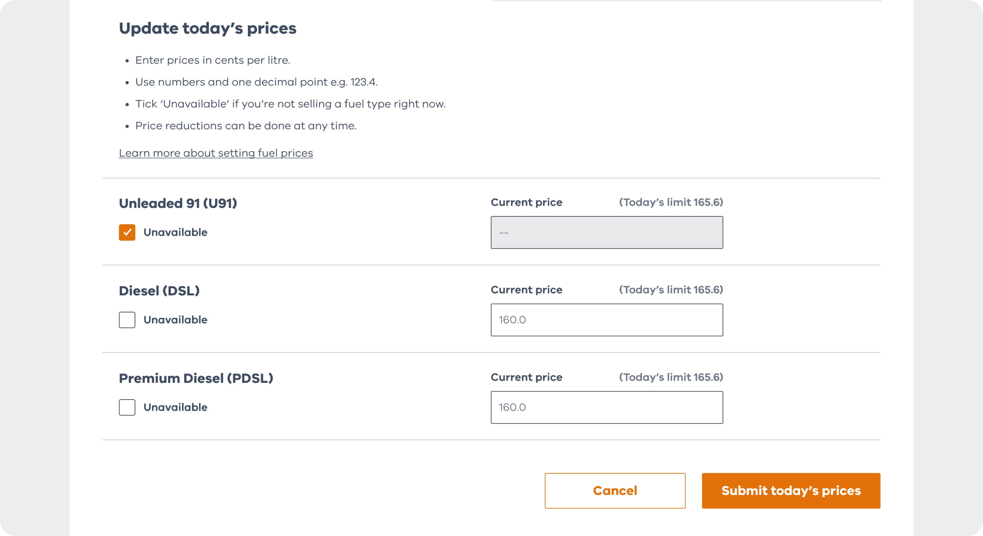 - tick ‘Unavailable’ if you’re not selling a fuel type right now