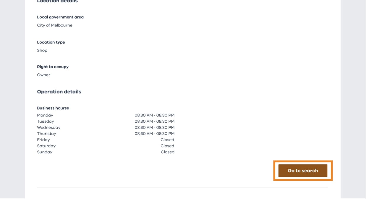 Now that your business profile account is set up, its time to register to report fuel prices. Select ‘Go to search’ at the bottom of the page.